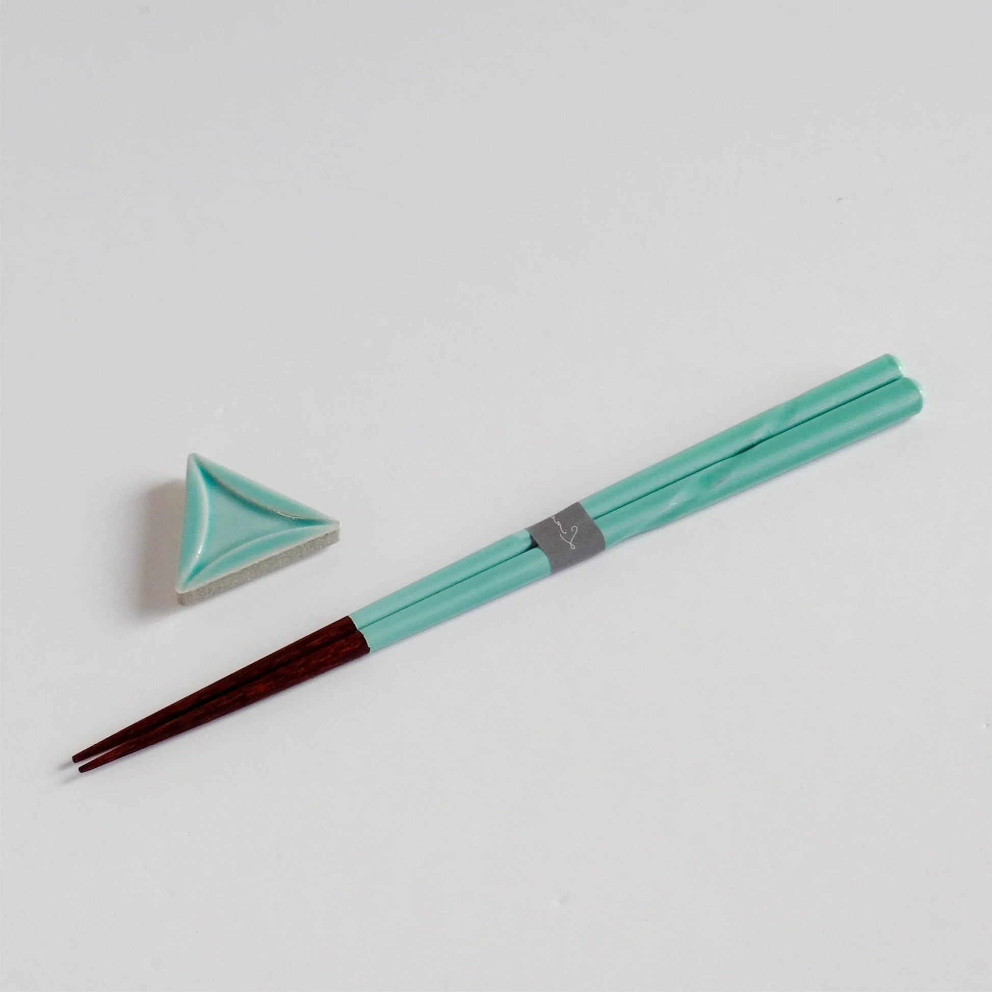 This chopstick set has lovely twisted carvings, tips in slender natural wood, and are beautifully paired with a Mino ware chopstick rest finished in the same colour. An authentic and gorgeous addition to the dining table.