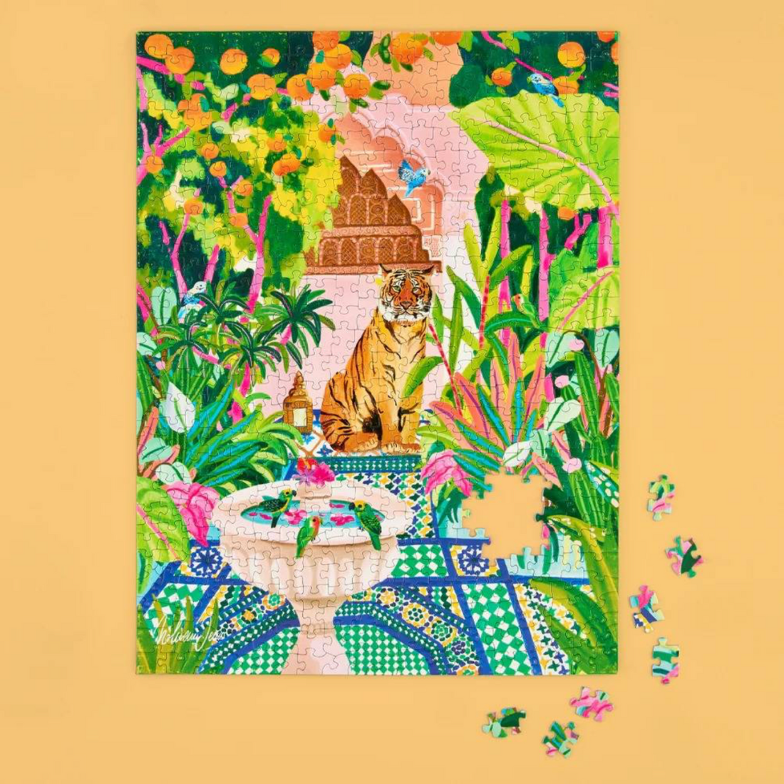 With artwork by Nolwenn Denis, this 500-piece puzzle takes you to a lush Moroccan garden, complete with a relaxing tiger and winged friends, both exotic and bountiful colours.